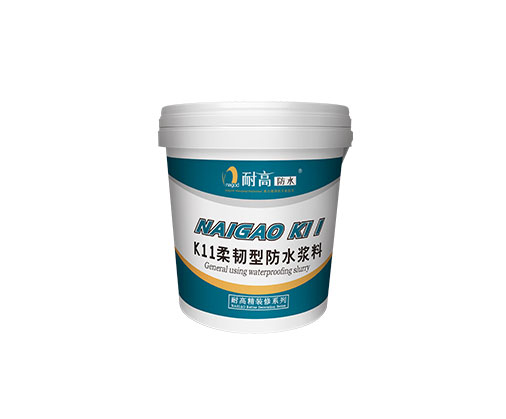 柔韌型K11防水漿料是一種雙組份、丙烯酸類高聚物改性和水泥基防水系統。粉料與添加劑混合后,發生了化學反應,形成一層堅韌的、富彈性的防水膜,該膜對混凝土和灰漿有良好的粘附性,能與之形成緊密牢固的永久性結合,阻止了水的滲透。